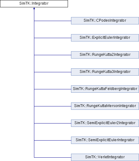 Inheritance diagram for SimTK::Integrator:Public Types | |