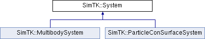 This is the base class that serves as the parent of all SimTK System objects; most commonly Simbody's MultibodySystem class. More...