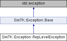 Inheritance diagram for SimTK::Exception::RepLevelException:Public Member Functions | |