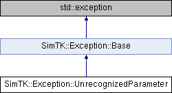 Inheritance diagram for SimTK::Exception::UnrecognizedParameter:Public Member Functions | |