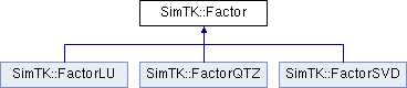 Inheritance diagram for SimTK::Factor:Public Member Functions | |
