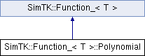 Inheritance diagram for SimTK::Function_< T >::Polynomial:Public Member Functions | |