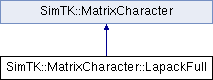 Inheritance diagram for SimTK::MatrixCharacter::LapackFull:Public Member Functions | |