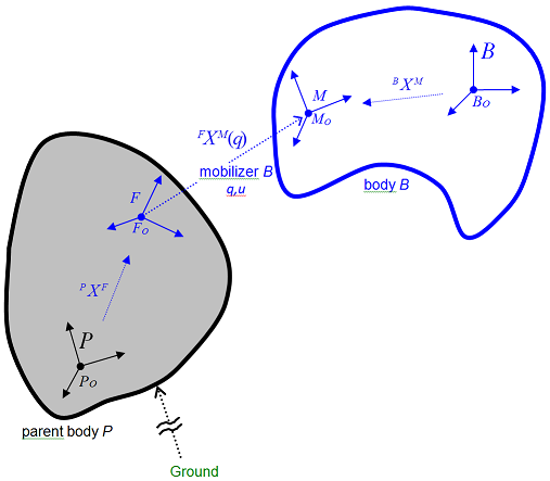 A MobilizedBody is Simbody's fundamental body-and-joint object used to parameterize a system's motion by constructing a multibody tree containing each body and its unique "mobilizer" (internal coordinate joint). More...