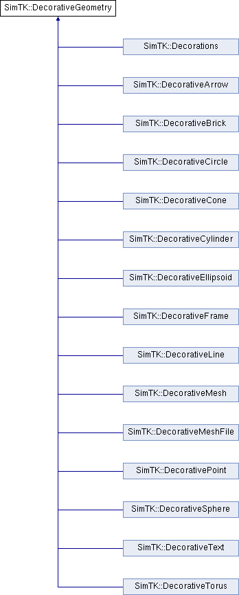Each concrete DecorativeGeometry object is expected to have a default size around "1", whatever that means for a particular object, and most objects also allow a user-specified size on construction. More... | |